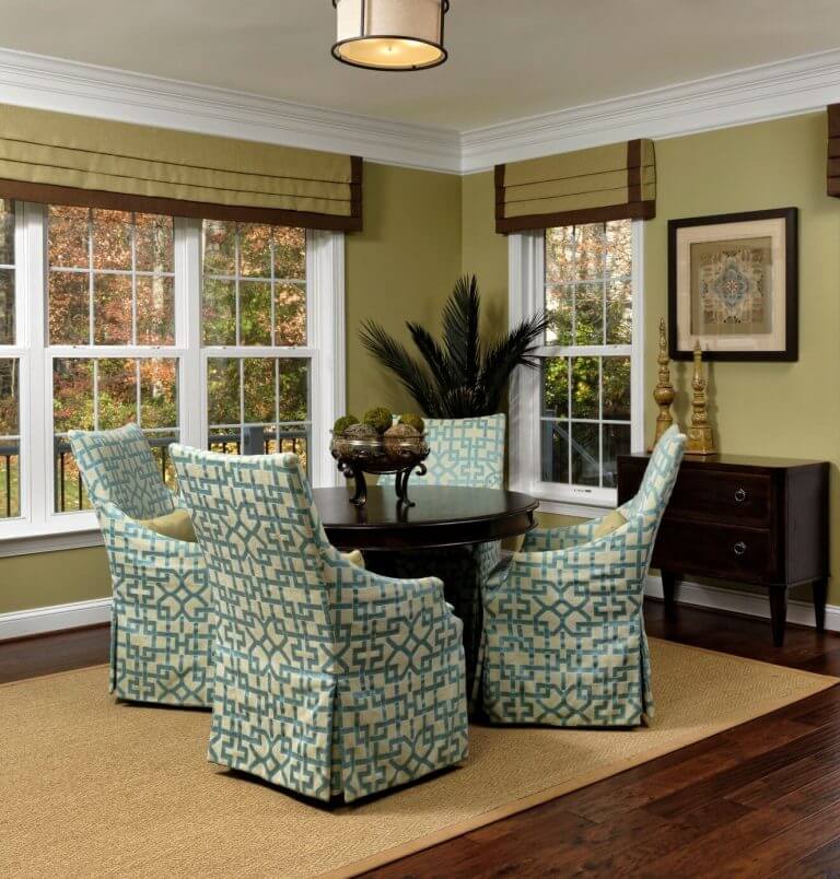 Long before “Greenery” became Pantone’s color of the year for 2017, this client wanted green. Their house is nestled among a beautiful throng of trees and she wanted to bring that lushness inside. Green is nature’s neutral so it easily paired with earthy brown, splashes of teal, and touches of Carnelian red to create an inviting palette that mirrored the gorgeousness just beyond the windows.